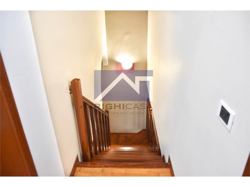 Zona notte al piano superiore, collegata da una scala in legno a vista, con due camere da letto, uno studio e un secondo bagno.