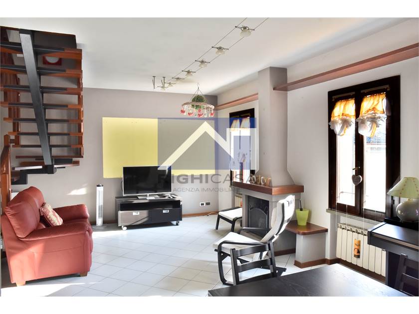 Zona giorno accogliente con soggiorno dotato di camino e suggestivo affaccio sul cuore del centro storico, cucina abitabile, bagno e antibagno.