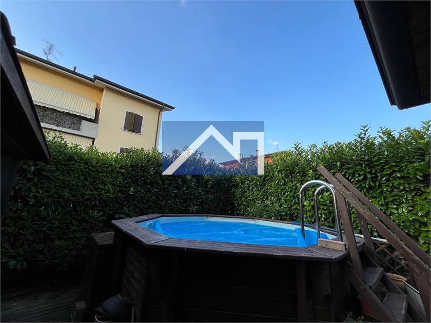 Al piano terra trovi stenditoio, lavanderia e garage, con un ampio giardino che ospita una piscina per godersi momenti all’aperto.